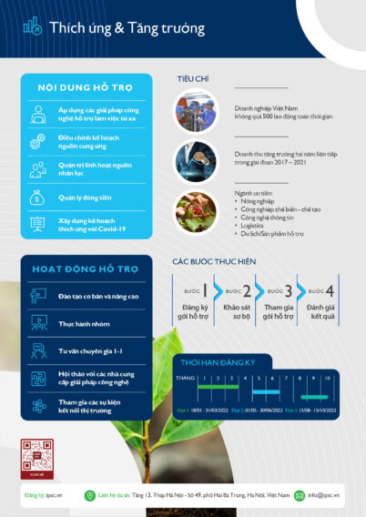 - Gói hỗ trợ 01: THÍCH ỨNG VÀ TĂNG TRƯỞNG – Hỗ trợ doanh nghiệp duy trì và cải thiện hoạt động kinh doanh trong bối cảnh Covid 19. Nội dung chi tiết xin xem qua ảnh dưới đây