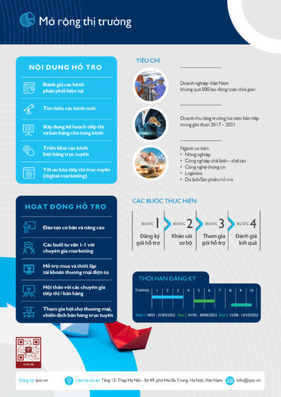 - Gói hỗ trợ 02: MỞ RỘNG THỊ TRƯỜNG – Hỗ trợ doanh nghiệp mở rộng thị trường tiêu thụ sản phẩm thông qua các kênh trực tiếp và trực tuyến.. Nội dung chi tiết xin xem qua ảnh dưới đây