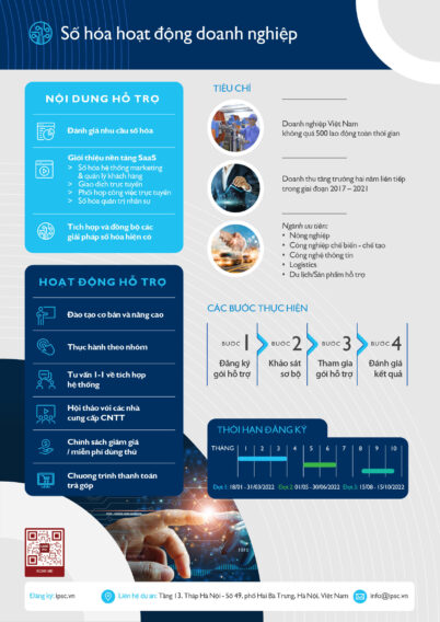 - Gói hỗ trợ 04: SỐ HÓA HOẠT ĐỘNG CỦA DOANH NGHIỆP – Hỗ trợ doanh nghiệp áp dụng các giải pháp số hóa phổ biến để nâng cao hiệu quả hoạt động. Nội dung chi tiết xin xem qua ảnh dưới đây