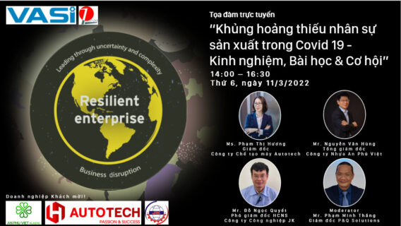 Ngày 11/3 VASI phối hợp với P&Q Solution đã tổ chức thành công tọa đàm trực tuyến “Khủng hoảng thiếu nhân sự sản xuất trong Covid 19 – Kinh nghiệm, bài học và cơ hội” với sự tham gia của khoảng 100 doanh nghiệp, khách mời. Nội dung tọa đàm