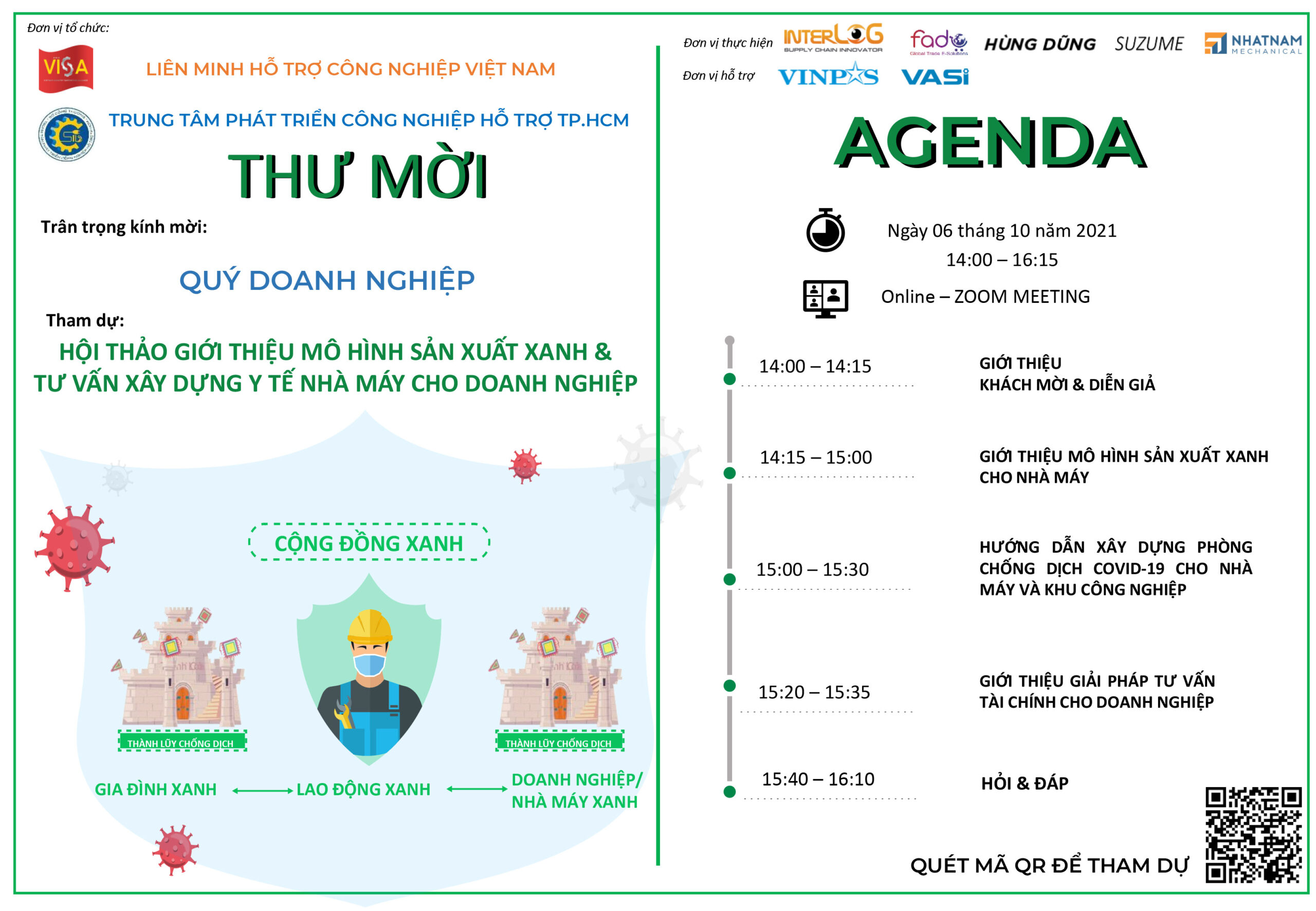 Thư mời tham gia Hội thảo Giới thiệu Mô hình Sản xuất Xanh & Xây dựng Y tế phòng chống dịch covid-19 cho nhà máy, Khu công nghiệp