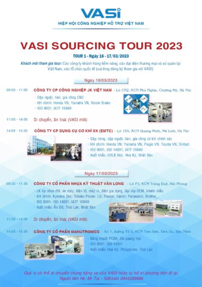 VASI – Mời tham gia chương trình VASI Sourcing tour – Tour 1 – Thứ 5, thứ 6, ngày 16, 17 tháng 3 năm 2022